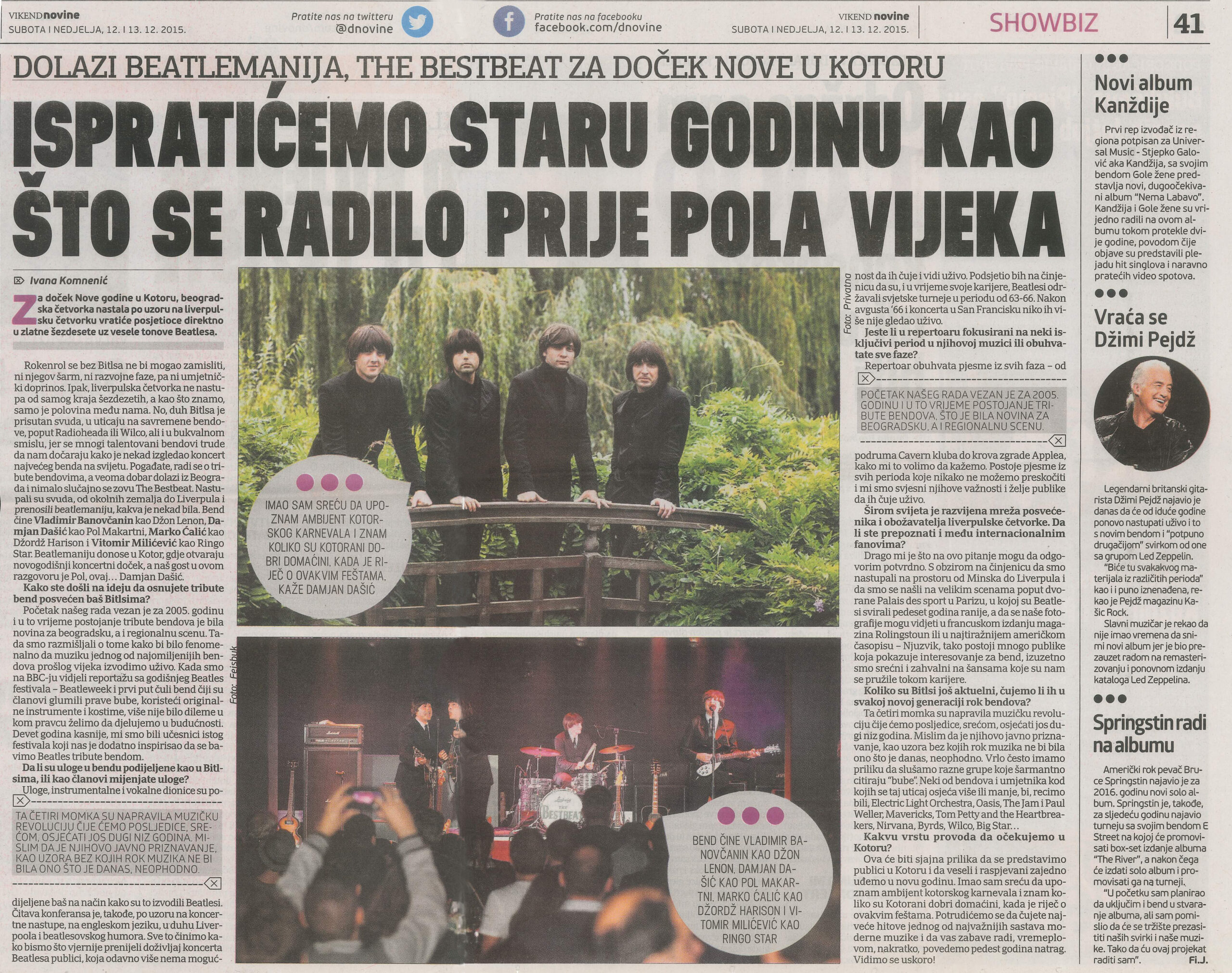 For New Year’s Eve in Kotor, the Belgrade band Bestbeat will transport the audience straight into the golden ’60s with the joyful tunes of the Beatles.